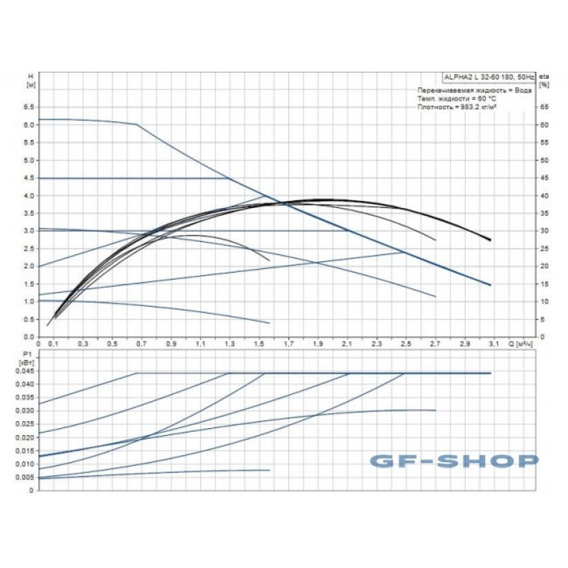 Циркуляционные насосы Grundfos ALPHA2 L 32-60 180 используются для циркуляции воды или гликольсодержащих жидкостей в регулируемых системах отопления и в системах отопления с переменным расходом. Режимы работы насосов: 3 фиксированные скорости, 2 режима постоянного давления, 2 режима пропорционально давления.