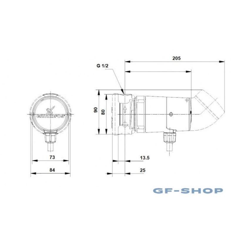 Насос циркуляционный Grundfos UP 15-14 BUT 80 - насос со сферическим электродвигателем. В отличие от традиционных насосов с "мокрым ротором", сферический электродвигатель не имеет подшипников вала. Магнитное поле передается от статора к ротору в проводящей водной среде и через проводящие части насоса. Насос подходит исключительно для горячей воды под давлением.