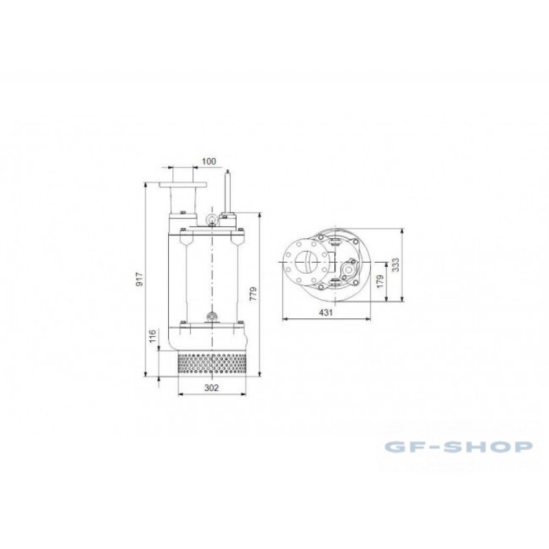 Насос выполнен из чугуна, имеет вертикальный напорный канал и оснащен встроенным погружным трехфазным закрытым электродвигателем, имеющим класс изоляции F (155°C).
