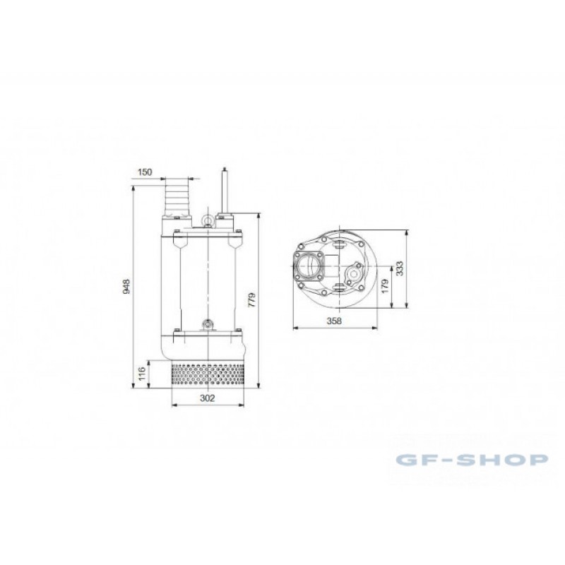 Насос выполнен из чугуна, имеет вертикальный напорный канал и оснащен встроенным погружным трехфазным закрытым электродвигателем, имеющим класс изоляции F (155°C).