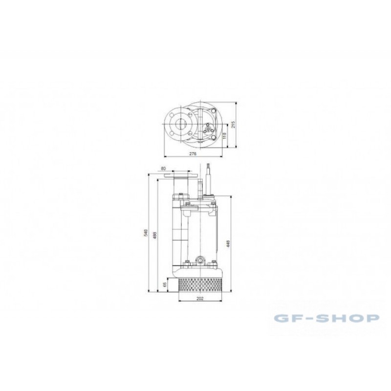 Насос выполнен из чугуна, имеет вертикальный напорный канал и оснащен встроенным погружным трехфазным закрытым электродвигателем, имеющим класс изоляции F (155°C).