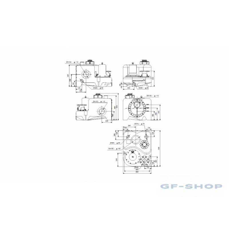 Канализационная насосная установка Grundfos M.12.1.4 10m поставляется полностью готовой к установке, состоит из резервуара с насосом и погружного электродвигателя, обратного клапана, адаптера с гибким штуцером DN100 установленным на резервуар и контроллера вкл. датчик уровня. Встроенный резервуар имеет все необходимые подключения для соединения с впускной трубой, вентиляционной трубой и ручного мембранного насоса (принадлежность). Резервуар содержит 7 входных патрубков по периметру. На задней стороне входной патрубок DN100 с запатентованным дисковым входом для бесступенчатого подключения всех трубопроводов (в центре) от 180 до 315 мм. Патрубки DN100 и DN50 на каждой стороне. DN150, DN50 на верхней части резервуара. Multilift на подвержен коррозии, а также герметичный и осадок на дне минимальный. Насос с вихревым рабочим колесом типа Vortex и погружными электродвигателями, имеет масляную камеру для заливки масла между двумя уплотнениями вала. Направление вращения можно посмотреть со стороны вала за рым-болтом. LC221 контроллер с микропроцессором оснащен дисплеем для полной возможности мониторинга. Насос и датчик подключен к контроллеру с 4 м или 10 м кабелем и трубой. Кабель питания 1,5 м с вилкой (с фазоинвертором для 3-х фазный двигатель). Бесконтактные, пьезо-резистивный датчик давления подключаемый внутри шкафа, контролируется контроллером, с точностью до миллиметра и отображается на дисплее. Контроллер для тепловой защиты электродвигателя и контроля работы насоса. Тепловая защита электродвигателя состоит из термического переключателя в обмотке.