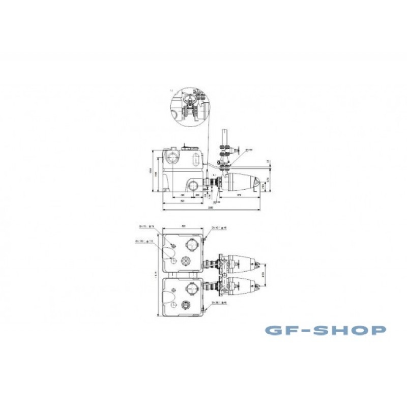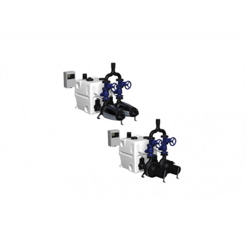 Канализационная насосная установка Grundfos MD1.80.100.75.4.51D/450-2.SE - компактная насосная станция для сточных вод, состоит из одного или двух баков объемом 450 л, двух горизонтальных погружныех насосов серии SE для сточных вод, вкл.контроллер, аналоговый датчик уровня и возможность подключения принадлежностей. Бак на 450 л изготовлен из герметичной, коррозионно стойкого полиэтилена и не пропускает газы и запахи. Он снабжен: