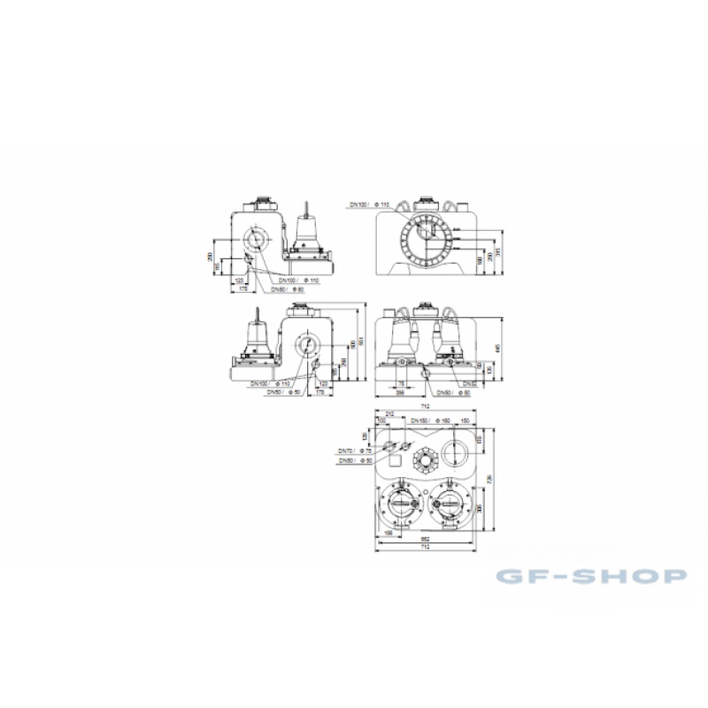 Канализационная насосная установка Grundfos MDG.31.3.2 Multilift поставляется полностью готовой к установке, состоит из герметичного резервуара с двумя насосами с режущим механизмом и погружными электродвигателями установленными на резервуар. Проводногно контроллера вкл.Датчик уровня. (Обратные клапаны и выпускные трубы поставляются в качестве принадлежностей). Полностью герметичный резервуар обладает всеми необходимыми патрубками для подключения впускной трубы, сливной трубы, вентиляционные трубы и ручного мембранного насоса (принадлежность). Сборный резервуар содержит 7 входных патрубков по периметру. Выходной патрубок DN100 позволяет подключить трубопроводы от 180 и до 315 мм без переходников. DN100 и DN50 входы на каждой стороне. DN150, DN50 вход на верхней части резервуара.Multilift на подвержен коррозии, а также герметичный и осадок на дне минимальный за счет специальной формы дна бака. Насос с вихревым рабочим колесом и погружными электродвигателями и безопасной маслянной камерой для заливки масла между двумя уплотнениями вала. Напорный патрубок с внутренней резьбой 1 1/4". LC221 контроллер с микропроцессором оснащен дисплеем для полной возможности мониторинга. Насос и датчик подключен к контроллеру с 4 м или 10 м кабелем и трубой. Кабель питания 1,5 м с вилкой (с фазоинвертором для 3-х фазный двигатель). Бесконтактные, пьезо-резистивный датчик давления подключаемый внутри шкафа, контролируется контроллером, с точностью до миллиметра и отображается на дисплее. Контроллер для тепловой защиты электродвигателя и контроля работы насоса. Тепловая защита электродвигателя состоит из термического переключателя в обмотке.