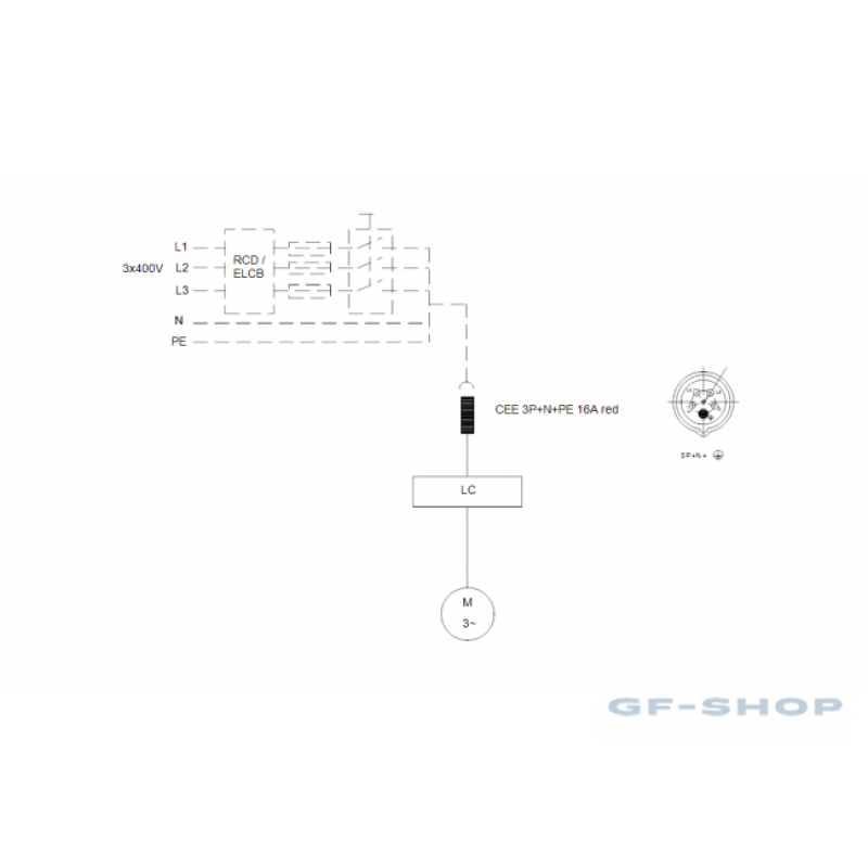 | Тип кабельной вилки | CEE 3P+N+E |