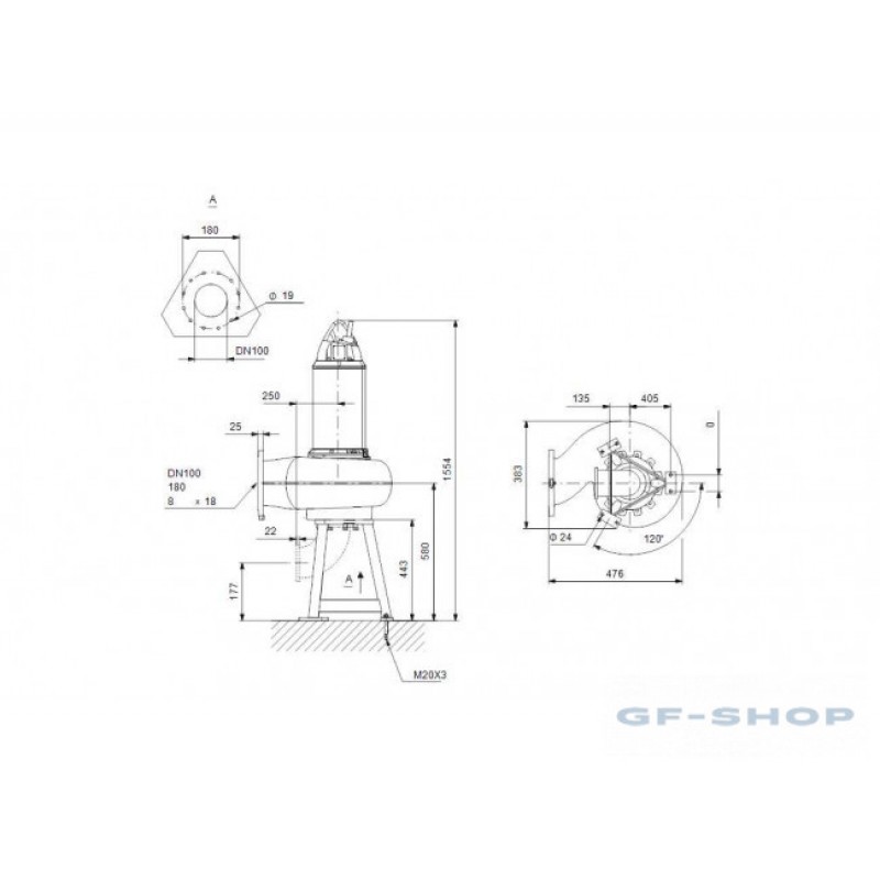 Насос канализационный GRUNDFOS SL1.85.150.110.4.52H.S.Q.N.51D