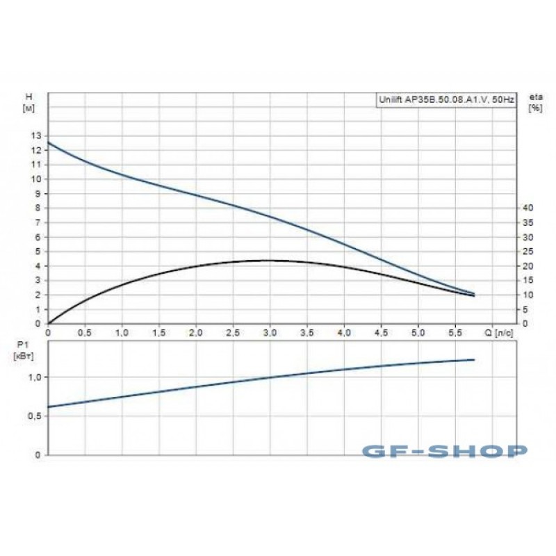 Насосы Unilift AP Basic являются одноступенчатыми насосами (AP35B, AP50B) с вихревым рабочим колесом.