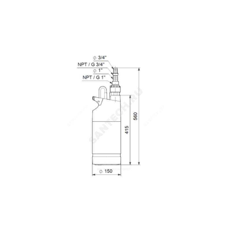 | Диаметр корпуса насоса | 6" |