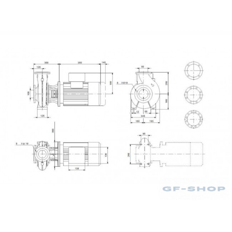 Несамовсасывающий, одноступенчатый, центробежный, насос со спиральной направляющей камерой разработан в соответствии с ISO 5199, при этом его размер и номинальная мощность соответствуют EN 733 (10 бар). Фланцы - PN 16 с размерами в соответствии с EN 1092-2. Насос имеет осевой всасывающий патрубок, радиальный напорный патрубок, горизонтальный вал и конструкцию со съёмной задней частью, обеспечивающей возможность демонтажа электродвигателя, фонаря, крышки и рабочего колеса без демонтажа корпуса насоса или трубопроводов. Несбалансированное резиновое сильфонное уплотнение в соответствии с DIN EN 12756. Насос напрямую соединён с асинхронным электродвигателем с воздушным охлаждением.