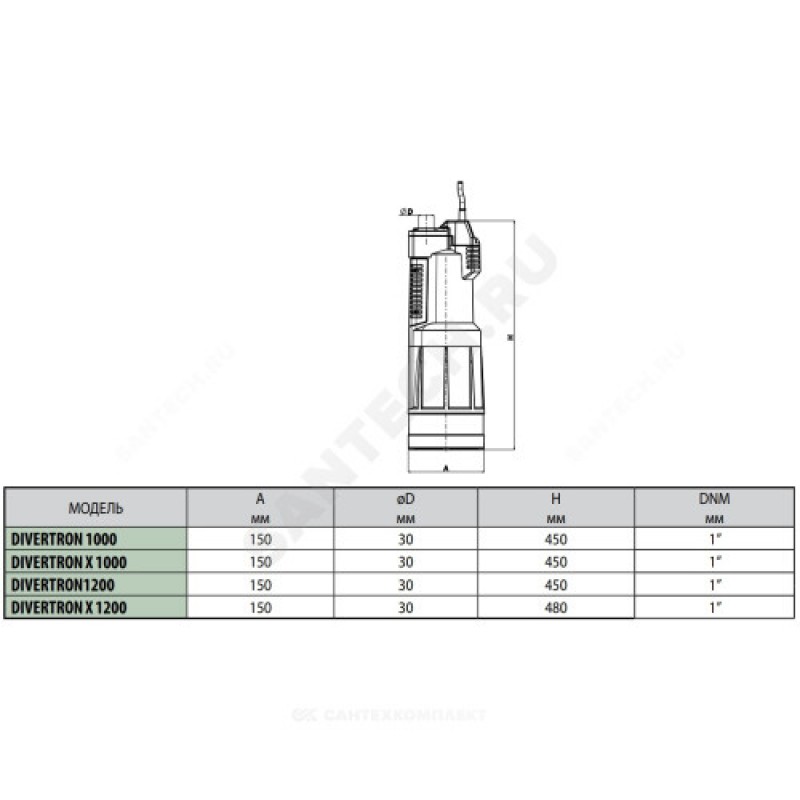 | Комплект поставки | Насос с кабелем, инструкция по эксплуатации |