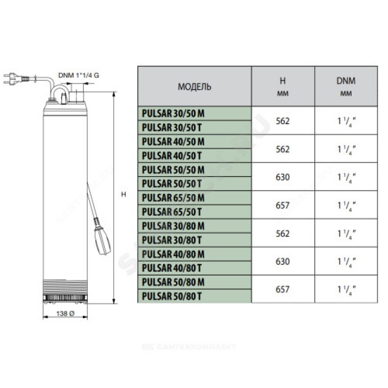 | Комплект поставки | Насос с кабелем и поплавковым выключателем, инструкция по эксплуактации |