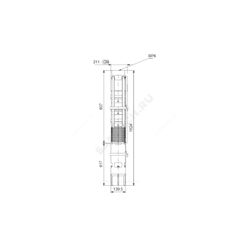 | Диаметр корпуса насоса | 6" |