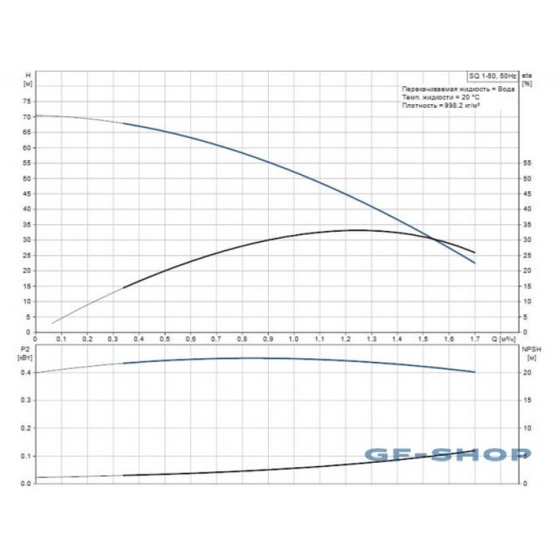 Скважинный насос Grundfos SQ 1- 50 рассчитан для работы с чистой водой, не содержащей посторонних волокон, твердых частичек. Оборудование комплектуется системами предохранителей от функционирования всухую, за счет которых обеспечивается автоматическое отключение, если в водозаборном источнике нет воды. Насосы серии отличаются производительностью, долговечностью, что достигается включением стекловолокна в гидравлические элементы. Оборудование экономично в расходе тока, минимизирует затраты пользователя, может устанавливаться в различном положении.