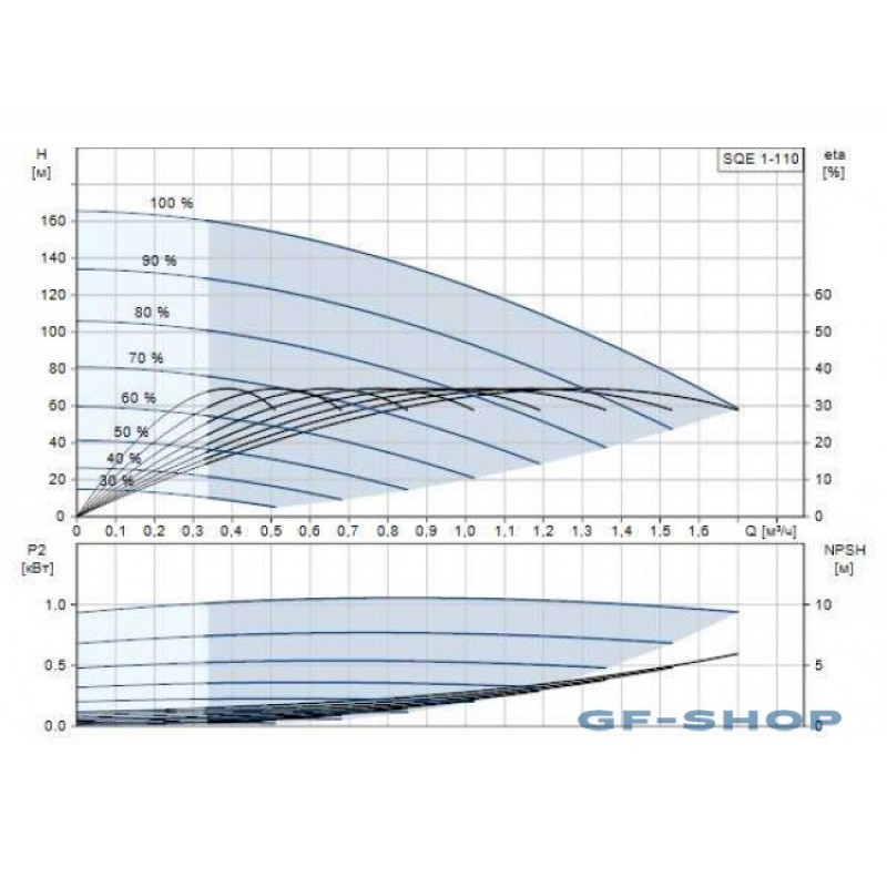 Скважинные насосы Grundfos SQE 1-110 предназначены для перекачивания чистых, не содержащих твердых частиц или волокон, жидкостей. Применяются для подачи грунтовой воды в системы водоснабжения частных домов, небольших водопроводных станций, ирригационных систем. Насосы SQE работают с переменной скоростью, что достигается за счет регулировки частоты. Как следствие, насос может быть настроен для функционирования в любой рабочей точке в диапазоне между минимальной и максимальной рабочей характеристикой насоса. Серия трёхдюймовых погружных насосов Grundfos SQ/SQE обеспечивает широкий диапазон производительности, что позволяет легко найти модель, которая соответствует вашим индивидуальным требованиям. Насосы SQ/SQE являются компактными, трёхдюймовыми, многоступенчатыми, центробежными насосами, которые могут устанавливаться даже в самой узкой скважине (минимальный диаметр скважины 76 мм). Встроенные электронные компоненты повышают уровень комфорта и значительно облегчают эксплуатацию насосов серии SQ/SQE. Они гарантируют надёжное водоснабжение при любых условиях. Данные насосы компактны и легки в установке, они оснащёны двигателями с постоянными магнитами, обеспечивают высокую эффективность и подачу напора до 200 м. Если насос SQE соединён с блоком управления Grundfos CU 301, то это позволяет обеспечить подачу воды с постоянным давлением. Назначение Насосы SQ/SQE подходят как для непрерывной работы, так и для работы с перерывами, что соответствует большому количеству видов назначения: Подача грунтовых вод – частные дома, небольшие системы водоснабжения, небольшие системы орошения; Перекачивание жидкости в резервуары; Повышение давления; Экологические решения – восстановительное откачивание или взятие проб; Гаражи и заправочные станции.