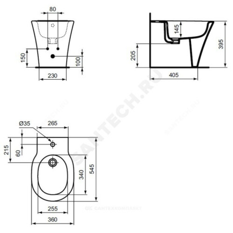 | Комплект поставки | "Напольное пристенное биде, с отверстием под |