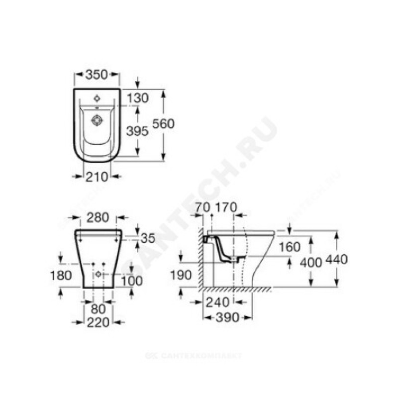| Отверстие под смеситель биде | есть |