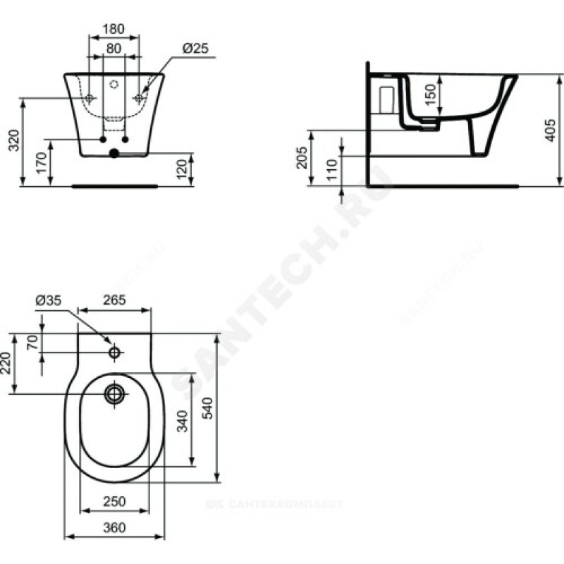 | Комплект поставки | "Подвесное биде, с отверстием под смеситель |