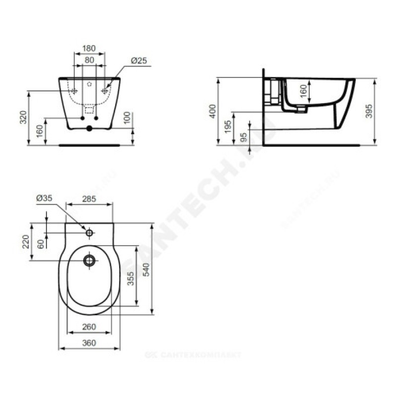 | Отверстие под смеситель биде | есть |