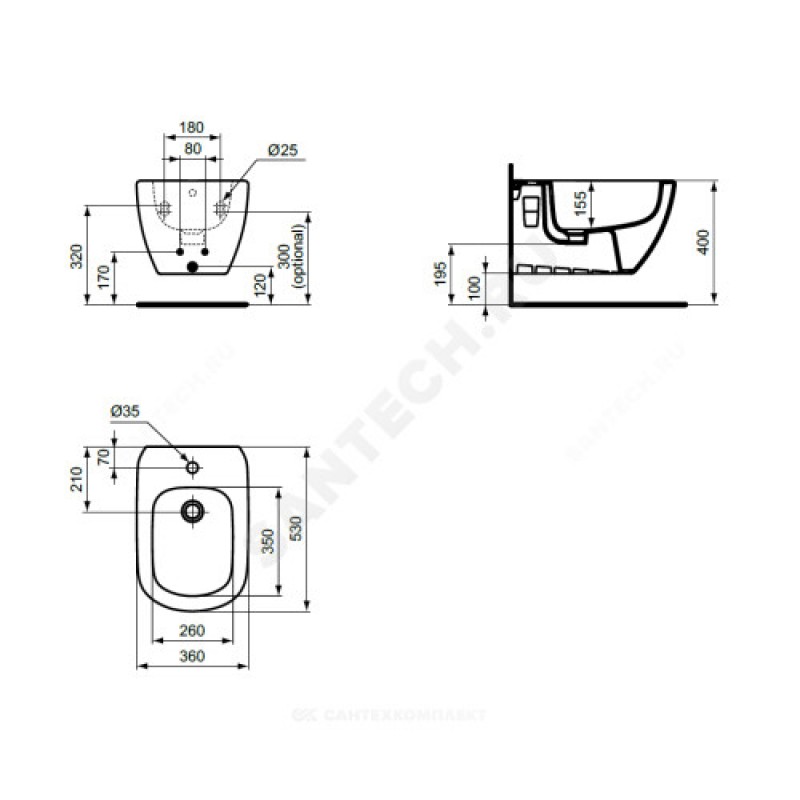 | Наименование производителя | Подвесное биде с отверстием под смеситель Ideal Standard TESI T3552V3 |