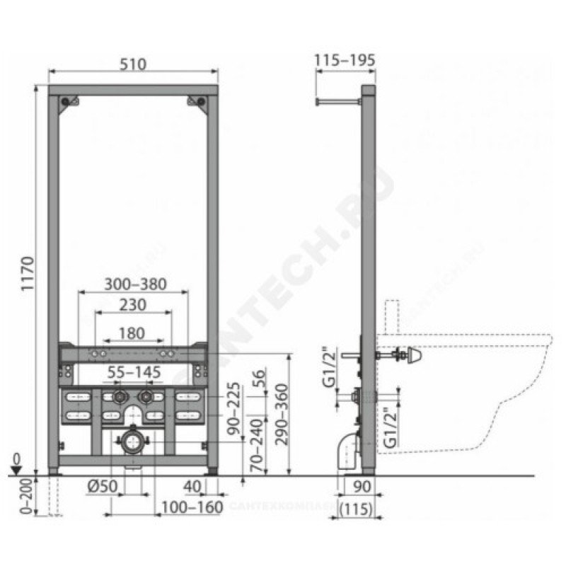 | Расстояние между креплениями сантехнического прибора | 180/230 мм |