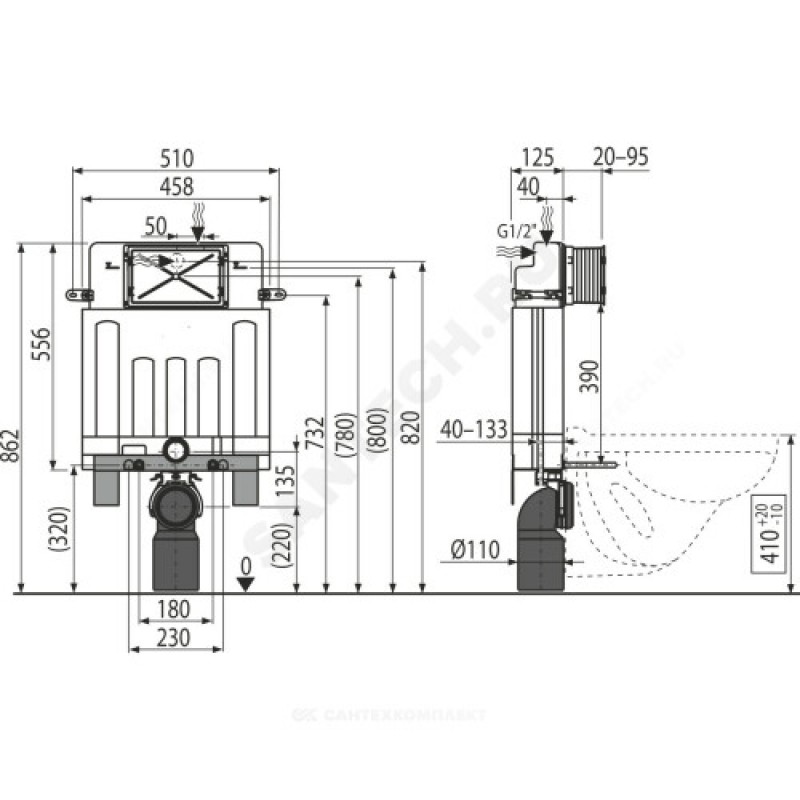 | Глубина установки инсталляции | 125 мм |