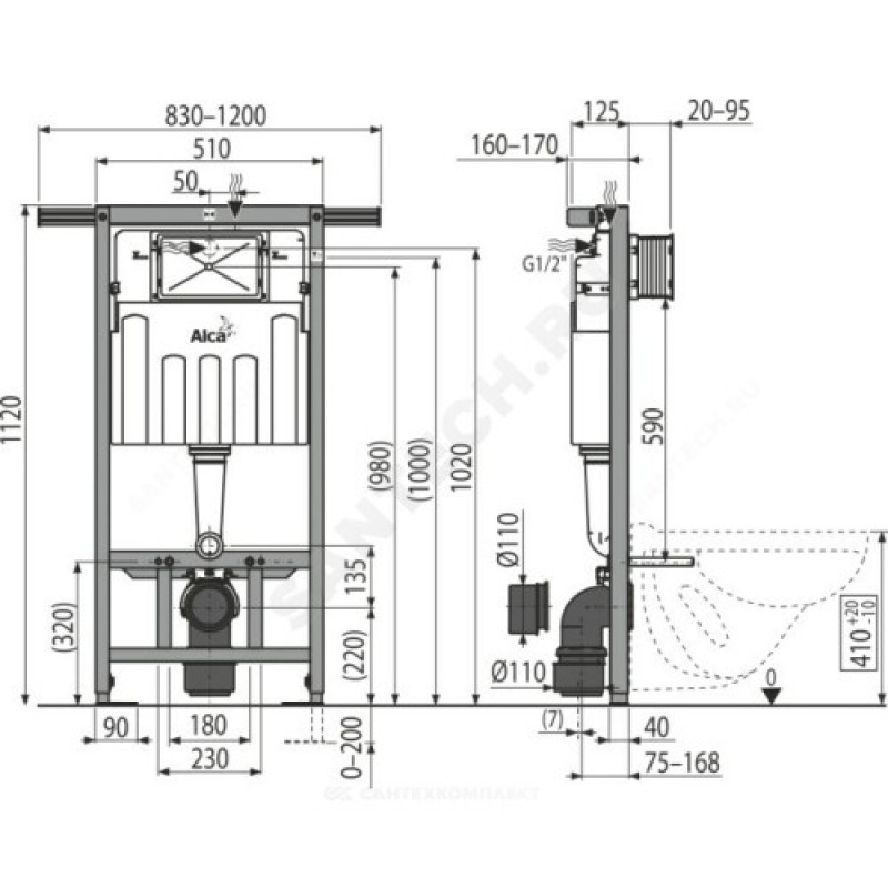 | Глубина установки инсталляции | 125 мм |