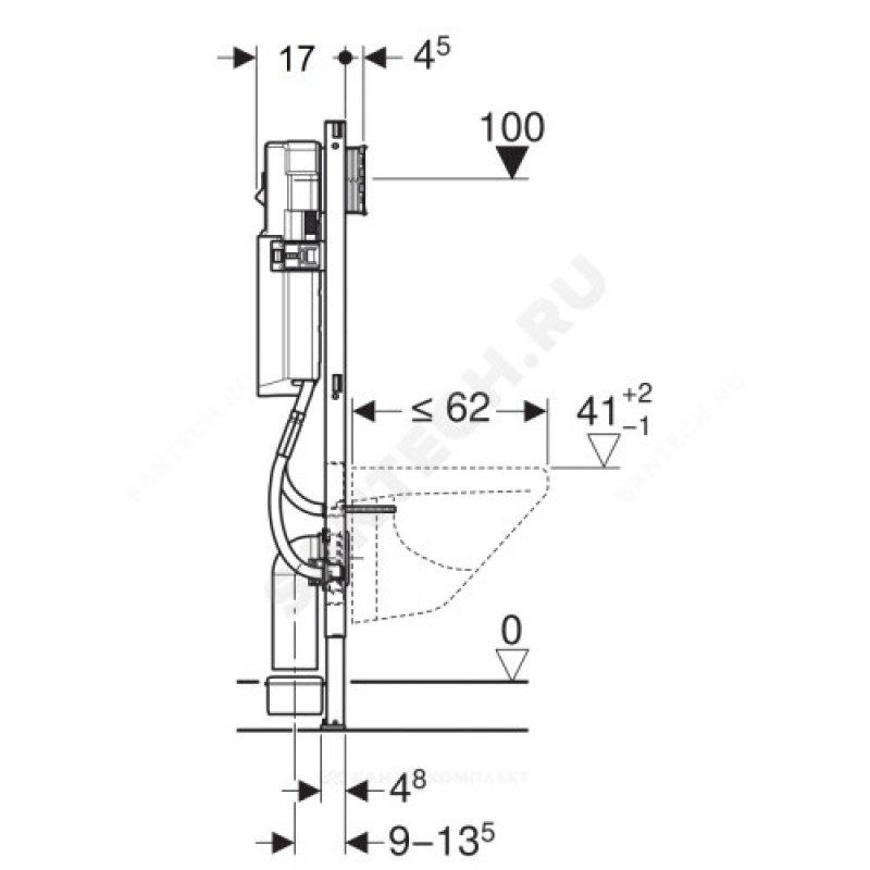 | Наименование производителя | Инсталляция Geberit Duofix для подвесного унитаза, 112 см, со смывным бачком скрытого монтажа Sigma 12 см, узкое исполнение |