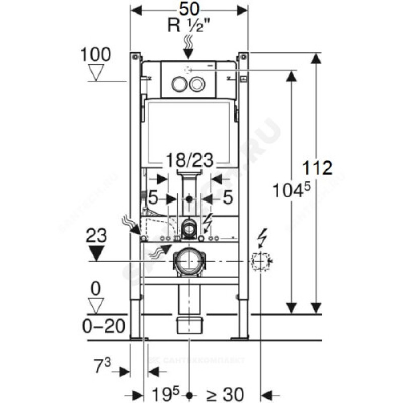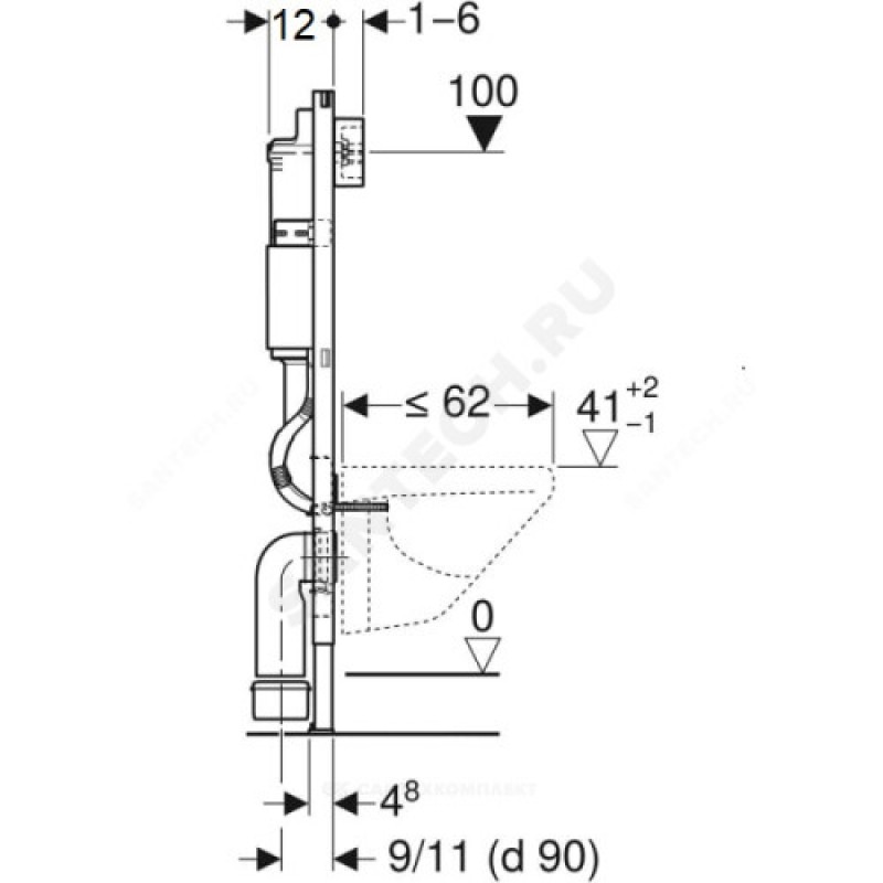 | Наименование производителя | Инсталляция Geberit Duofix для подвесного унитаза, 112 см, со смывным бачком скрытого монтажа Delta 12 см, смывная клавиша Delta21 |