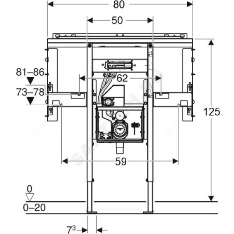 Наименование производителя Инсталляция Geberit Duofix для раковины Geberit ONE и встраиваемого в стену смесителя Geberit ONE, по высоте помещения, с внутристенным поворотным сифоном, с внутристенным Clou: B=80см, Ширина pаковина=75см, H=125см, T=14см