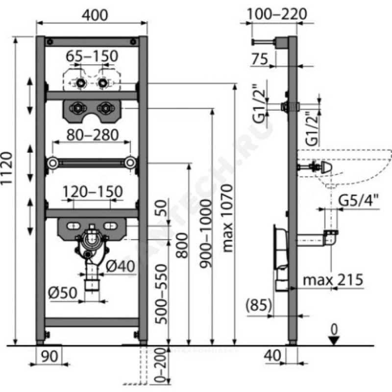 | Расстояние между креплениями сантехнического прибора | 80-280 мм |