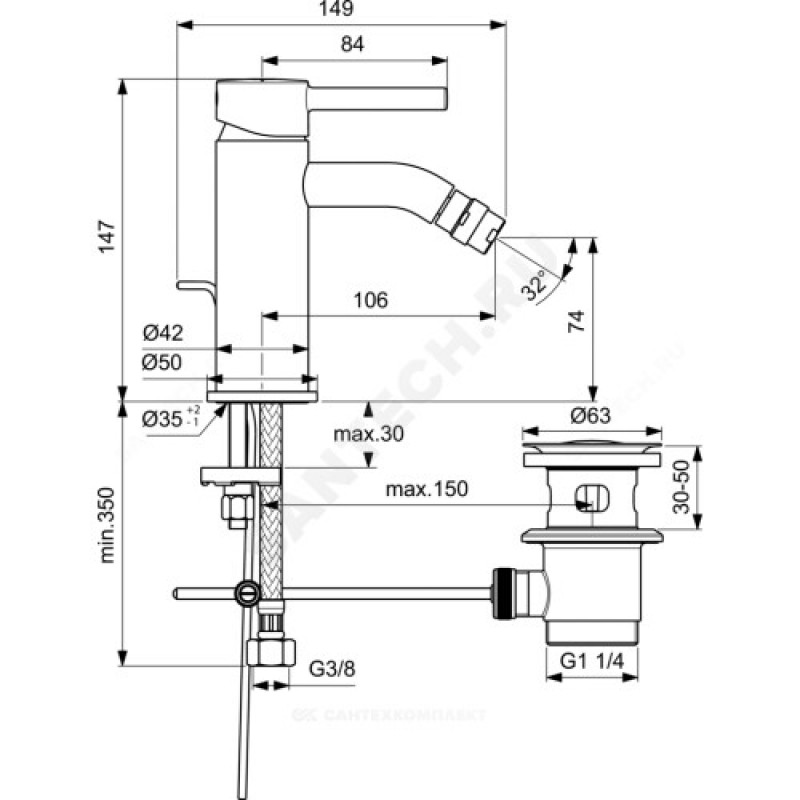 | Наименование производителя | Однорукоятковый смеситель для биде Ideal Standard CERALINE BC197XG |