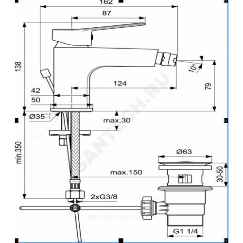 | Комплект поставки | смесителькрепежный комплектдонный клапан 1 1/4"подводка гибкая - параупаковкапаспорт |