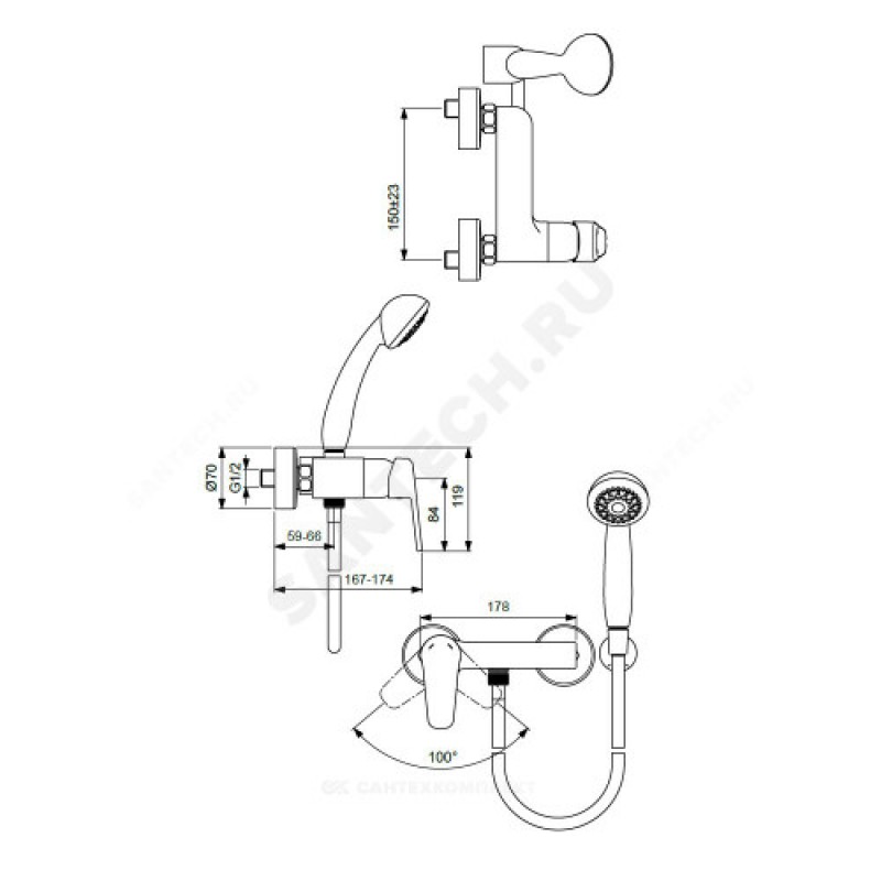 | Комплект поставки | смеситель, шланг для душа, лейка для душа, держатель для лейки настенный, эксцентрики , отражатели, уплотнительные прокладки, упаковка, паспорт |