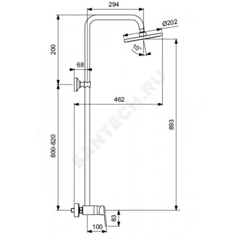 | Комплект поставки | смеситель, верхний душ 202мм, душевая штанга 1020мм |