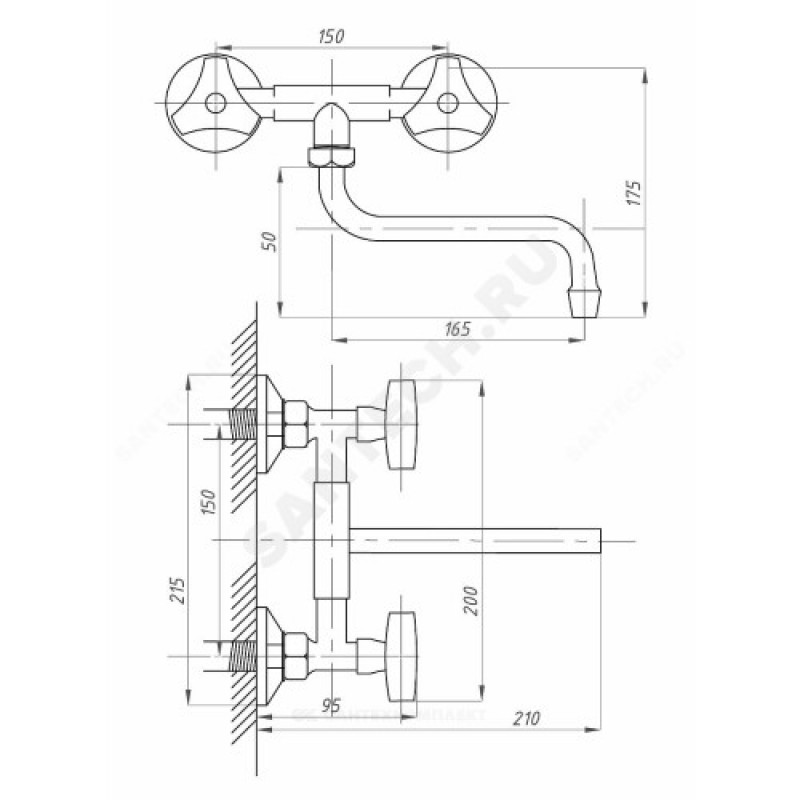 - Артикул:Смеситель для кухонной мойки ПСМ-108-К/80 двуручный Профсан