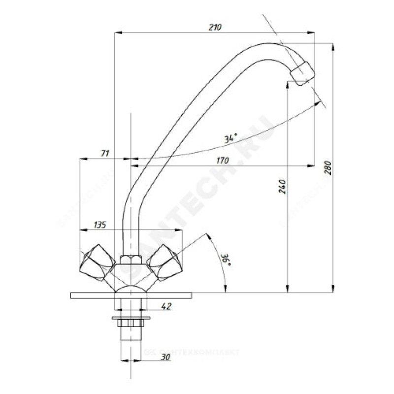 - Артикул:Смеситель для кухонной мойки ПСМ-127-К/50 двуручный Профсан