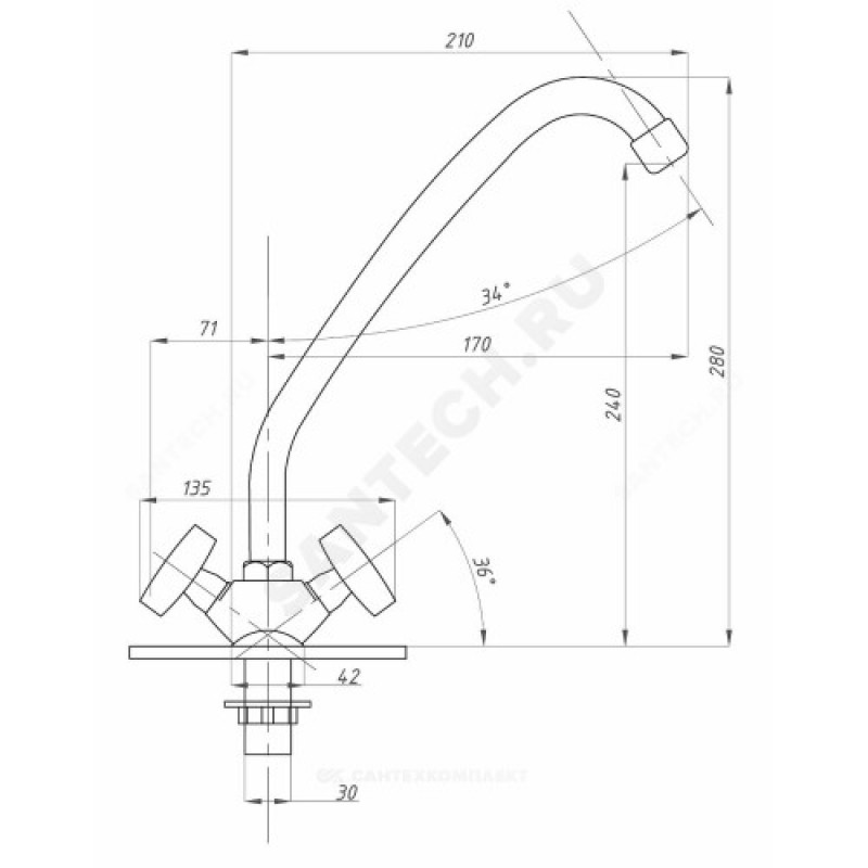 - Артикул:Смеситель для кухонной мойки ПСМ-127-К/80 двуручный Профсан