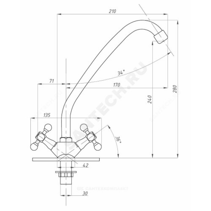 - Артикул:Смеситель для кухонной мойки ПСМ-127-К/89 двуручный Профсан