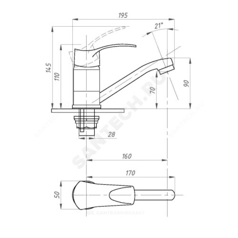 - Артикул:Смеситель для кухонной мойки ПСМ-215-КТ/023 одноручный Профсан