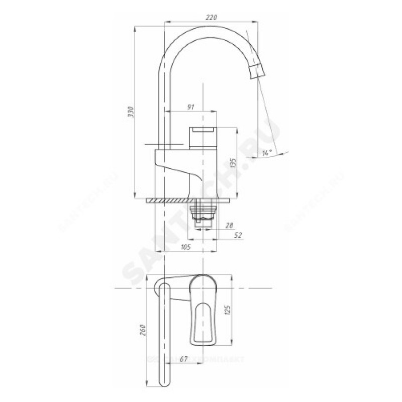 | Длина излива | 220 мм |
