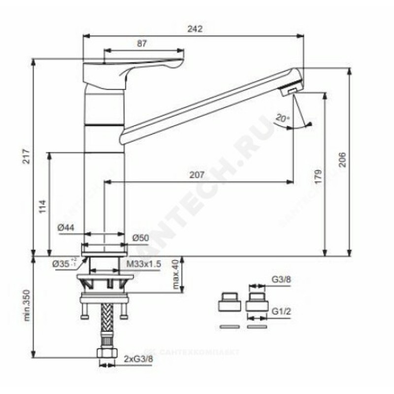 | Стандарт подводки | М10х1-G3/8", в комплекте переходник G3/8"-G1/2" |