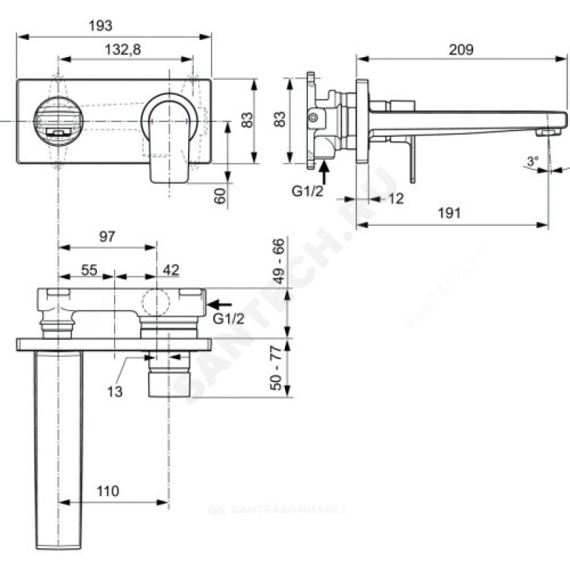 | Встраиваемая часть смесителя | заказывается отдельно |
