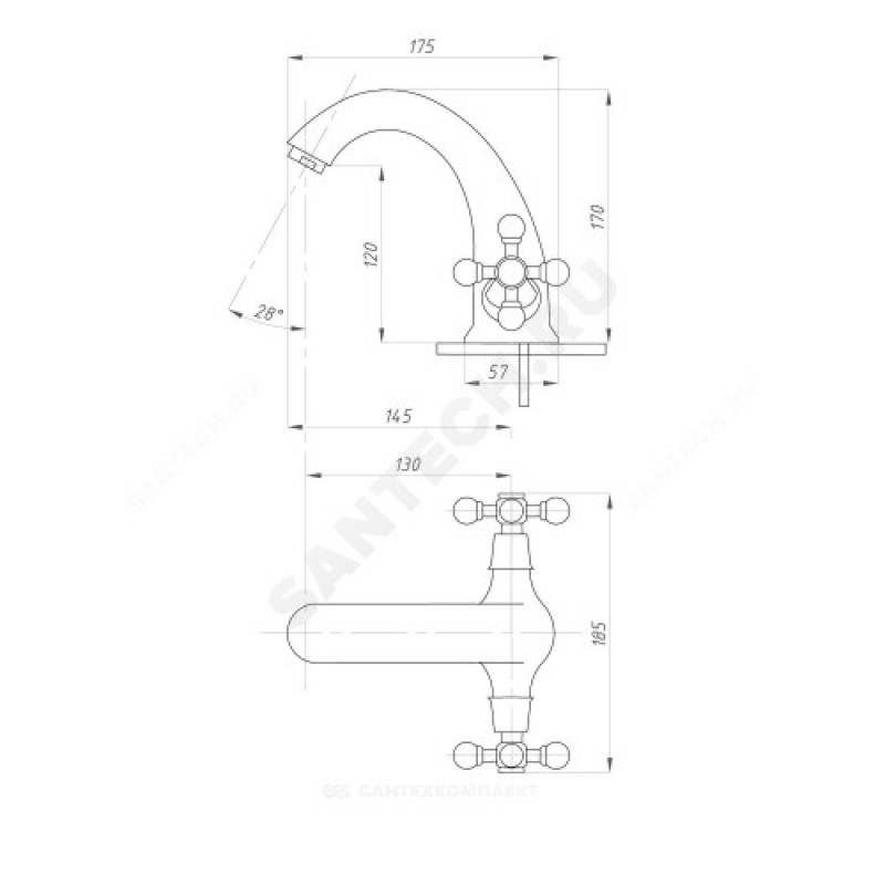 - Артикул:Смеситель для умывальника ПСМ-712-К/48 двуручный Профсан