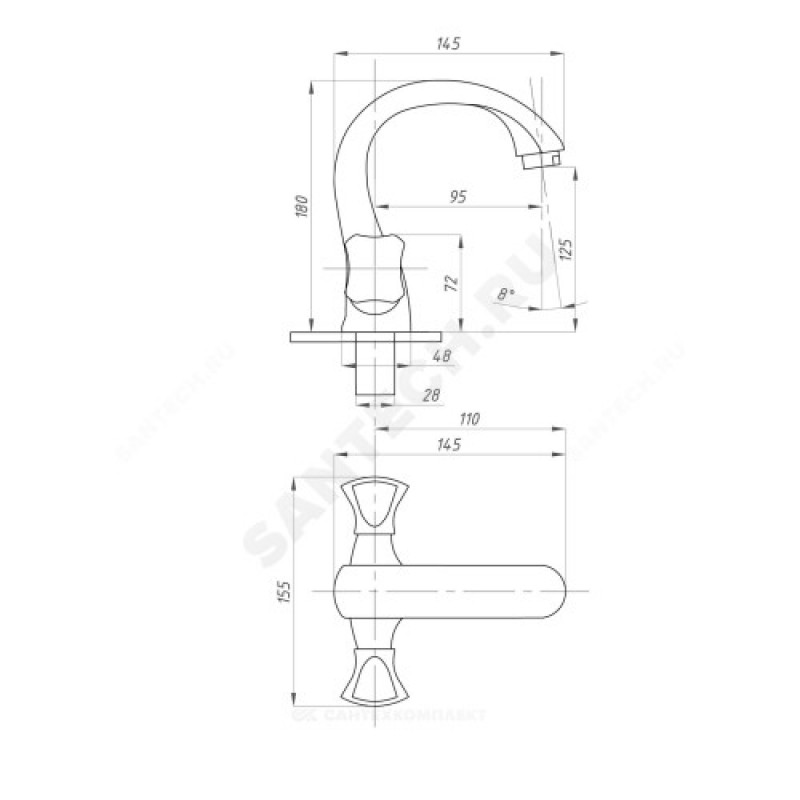 | Вращение излива | фиксированный |