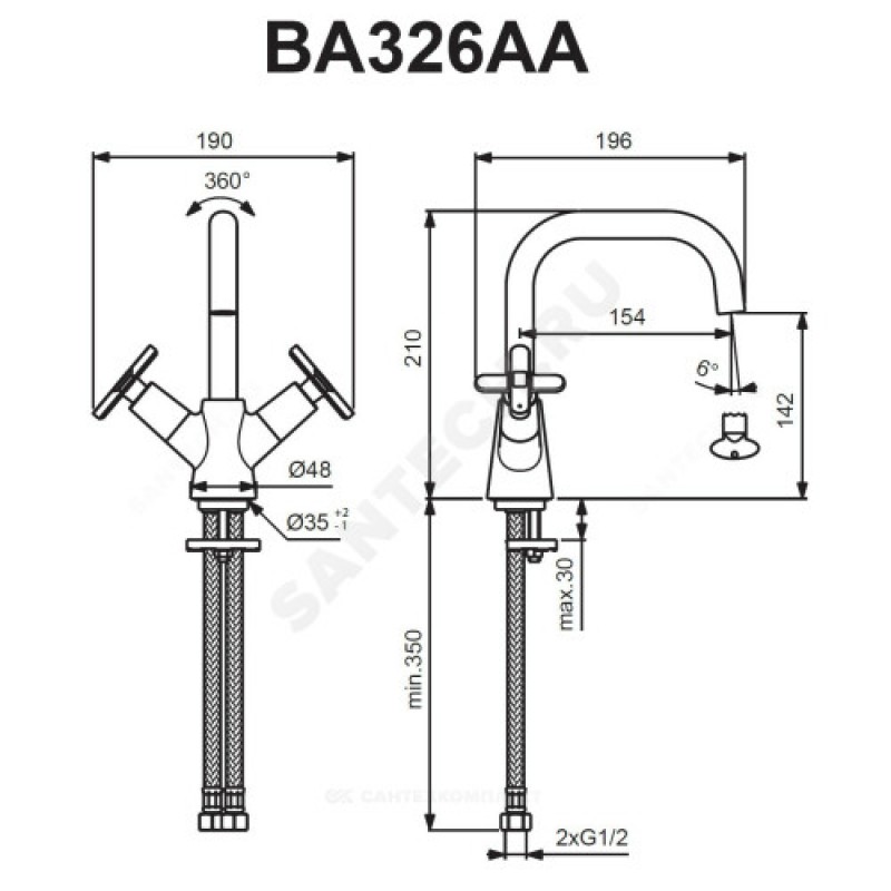 | Тип подводки | гибкая подводка |