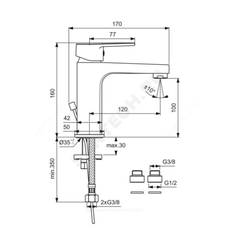 | Стандарт подводки | М10х1-G3/8", в комплекте переходник G3/8"-G1/2" |