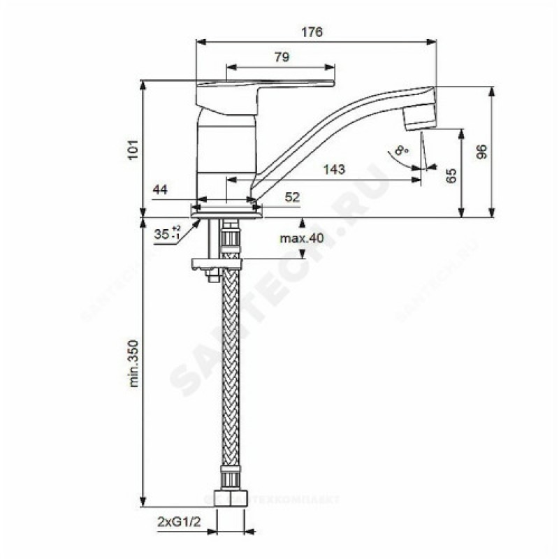 | Комплект поставки | смеситель, подводка гибкая, крепежный комплект (шпилька с гайкой, пластина U-образная, прокладка U-образная, прокладка круглая), упаковка, паспорт |