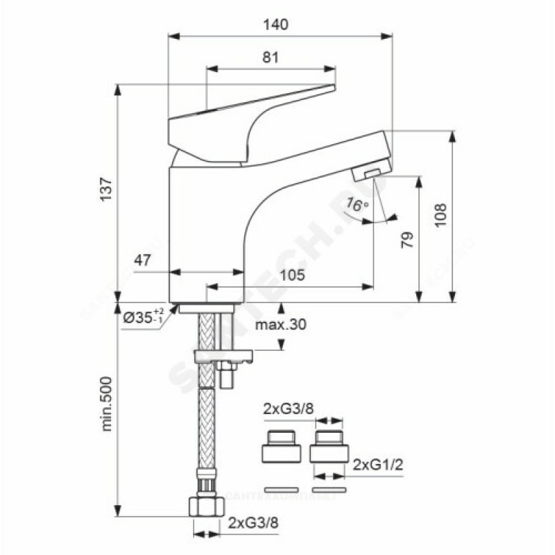 | Стандарт подводки | М10х1-G3/8", в комплекте переходник G3/8"-G1/2" |