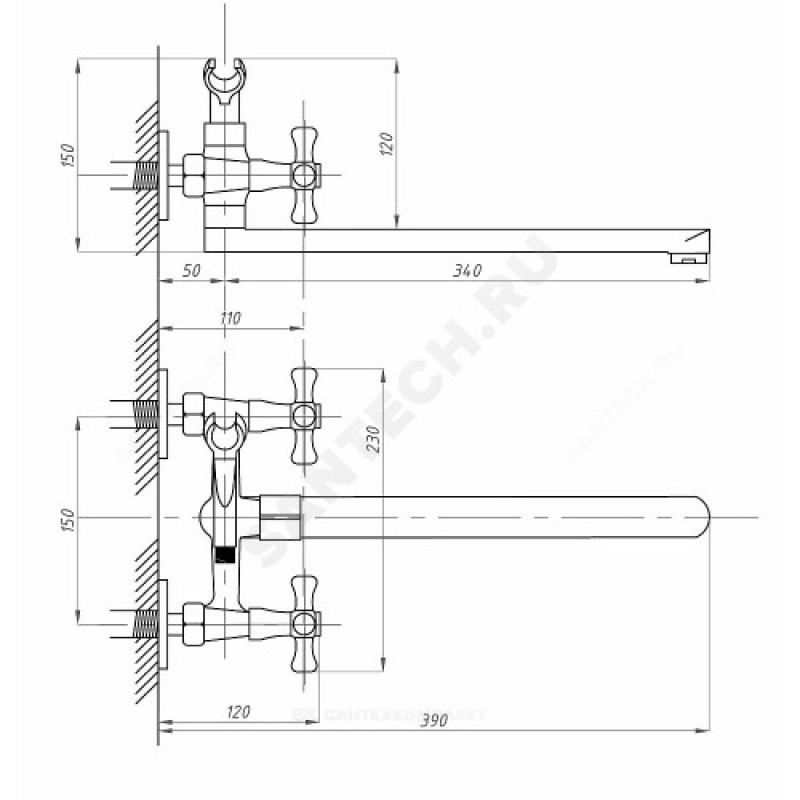 - Артикул:Смеситель для ванны с душем ПСМ-159-ЕК/75 двуручный Профсан