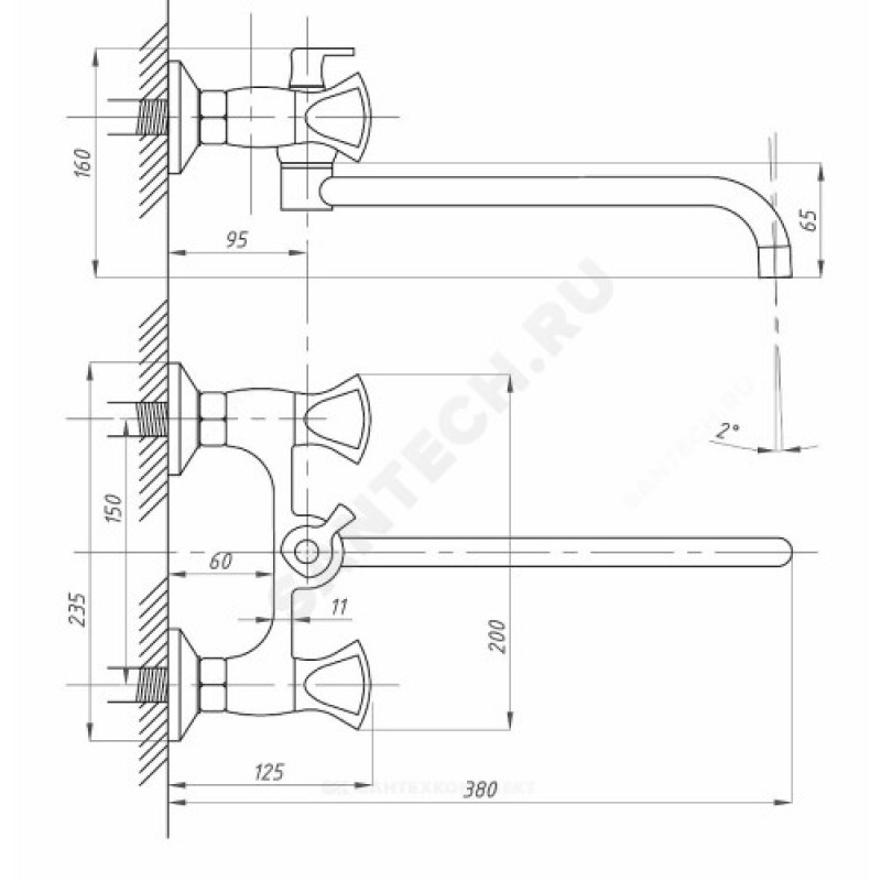 - Артикул:Смеситель для ванны с душем ПСМ-192-К/38 двуручный Профсан